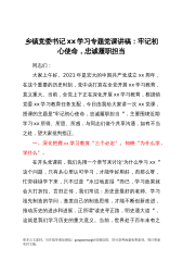 乡镇党委书记党史学习专题党课讲稿:牢记初心使命,忠诚履职担当范文