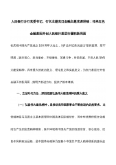 人民银行分行党委书记、行长主题党日金融主题党课讲稿:传承红色金融基因开创人民银行基层行履职新局面在庆祝中国共产党成立100周年大会上,XJP总书记首次提出“坚持真理、坚守理想,践行初心、担当使命,不怕牺牲、英勇斗争,对党忠诚、不负人民”的伟大建党精神,具有重大的政治意义、理论意义和实践意义,为央行基层行开创金融工作新局面,指明了前进方向、提供了根本遵循。一、立足时代方位,深刻把握弘扬伟大建党精神的重大意义(一)弘扬伟大建党精神,是推动党和国家事业不断前进的必然要求。建党精神是马克思主义基本原理同中国具体实际相结合、同中华优秀传统文化相结合产生的宝贵精神财富,集中体现着中国共产党的性质宗旨、初心...