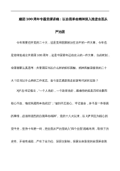 建团100周年专题党课讲稿:以自我革命精神深入推进全面从严治团今年将要召开党的二十大,这是党和国家政治生活中的一件大事。今年也是党缔造成立共青团100周年,这是中国青年运动史上的一件大事。当此时刻,全团都要认真思考:共青团应当以什么样的组织面貌、精神风貌迎接党的二十大?应当以什么样的工作状态、奋斗姿态紧跟党走好新时代的长征路?XJP总书记指出,“一个人也好,一个政党也好,最难得的就是历经沧桑而初心不改、饱经风霜而本色依旧”;“做到不忘初心、牢记使命,并不是一件容易的事情,必须有强烈的自我革命精神”。党的十八大以来,以XJP同志为核心的党中央,坚持十年磨一剑,把全面从严治党纳入“四个全面”战略布...