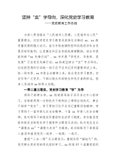 突出三条主线高质量推进党史学习教育——党史教育工作总结xx市康健街道党工委深入贯彻落实xx省委、区委关于党史学习教育的部署要求,持续巩固深化“不忘初心、牢记使命”主题教育成果,突出思想引领、学习覆盖、实践融合三条主线,高质量推进党史学习教育。突出思想引领主线康健街道党工委召开党史学习教育专题推进会,要求康健全体党员充分认识党史学习教育是贯彻落实习近平总书记考察xx重要讲话精神的实际行动,是建立不忘初心、牢记使命长效机制的重要内容,是筑牢不忘初心、牢记使命思想根基的有力举措,也是各级党组织的重要政治任务。进一步凸显康健区域内xx省委党校、xx市委党校、康健社区党校三级党校联动教育优势,统筹利用好...