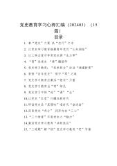 党史教育学习心得汇编(202403)(15篇)1.秉“党史”之要执“忠行”之本..................32.以党史学习教育描摹青年党员“认知测绘”...............73.以三种态度守学用党史铸“生力军”........................104.“简”述党史“牍”懂韶华.....................145.党史学习教育:“起承转合”讲活“滴灌新课”..........176.常悟“百年党史”常守“零”之道...............227.党史学习教育应激活“银发”力量...............258.党史学习教育当“常”相见..........