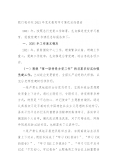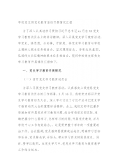 学校党支部党史教育活动开展情况汇报为了深入认真地学习贯彻习近平总书记xx月在XX党史学习教育动员会上的讲话精神,深入开展党史学习教育活动,学党史,悟思想,办实事,开新局,将党史学习教育与学校立德树人根本任务相结合、坚定理想信念、传承红色基因、弘扬伟大长征精神的根本任务相结合。现将学校党支部党史学习教育开展情况汇报如下:一、党史学习教育开展情况(一)召开党史学习教育动员会为深入开展党史学习教育活动,认真落实上级党组党史学习教育动员会的工作部署。3月16日,我校党支部召开党史学习教育动员大会,深入学习讨论了习近平总书记党史学习教育动员大会的重要讲话精神。会上,我校支部书记潘多彩就如何开展党史学习教...