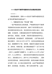 市委党史学习教育领导小组办公室:按照市委党史学习教育方案要求,在市委党史学习教育领导小组办公室和第九巡回指导组的悉心指导下,局党委扎实开展党史学习教育,现将我局党史学习教育开展情况汇报如下:一、总体进展情况党史学习教育开展以来,局党委高度重视,认真研究,坚持高站位部署、高起点开局、高标准推进,严格落实县处级领导干部9项规定动作和基层党组织8项动作要求,较好地完成了前一阶段各项任务。县处级领导干部方面,从3月12日成立局党委党史学习教育领导小组至今,先后组织集中学习3次;认真撰写学习心得体会,每人撰写心得体会3篇,领导干部讲党课15人次;开展“我为群众办实事”工作,整理为群众办实事事项9件;基层...