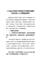 X石油公司党员干部党史学习教育专题组织生活会个人对照检查材料范文