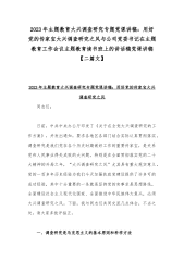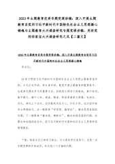 2023年主题教育大兴调查研究专题党课讲稿:抓好基层工作大兴调查研究之风与“学思想、强党性、重实践、建新功”主题教育党课讲稿:深学笃用知行合一把主题教育成果转化为推动工作的强大动力【2篇文】