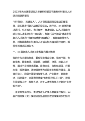 2023年大兴调查研究之县委组织部关于激发乡村振兴人才活力的调研报告“”乡村振兴,关键在人,人才是打赢脱贫攻坚战的硬支撑,是实施乡村振兴战略的软实力。近年来,xx县坚持量才进村、引才回乡、育才服务、聚才创业,以人才战略行“”“动打响人才支撑乡村振兴战。根据《关于报送激发乡村”振兴人才活力书面调研材料的通知》,我部组织精干人员,对我县激发乡村振兴人才活力相关情况进行调研,现将有关情况汇报如下。一、xx县各类人才参与乡村振兴基本情况党的十九大报告指出:要吸引支持企业家、党政干部、专家学者、医生教师、规划师、建筑师、律师、技能人才等,通过下乡担任志愿者、投资兴业、包村包项目、行医办学、捐资捐物、法律...