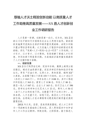 厚植人才沃土释放创新动能+以高质量人才工作助推高质量发展——XX县人才创新创业工作调研报告