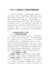 厚植人才沃土释放创新动能以高质量人才工作助推高质量发展——XX县人才创新创业工作调研报告人才是第一资源,创新是第一动力。近年来,XX县坚持以习近平新时代中国特色社会主义思想为指导,紧抓国家实施黄河流域生态保护和高质量发展战略、省级乡村振兴重点帮扶县等机遇,大力实施人才强县和创新驱动发展战略,深化“党建+人才+院校+企业+项目”工作机制,以才引才、以才育才、以才聚财,有效破解了高端人才引进难、作用发挥不明显等问题,为县域经济高质量发展提供了人才支撑和智力保障。一、调研背景XX县位于陕西省北部、延安市东部,属黄土高原丘陵沟壑区,境内石油资源丰富,适宜多种农作物和经济作物生长,享有“石油之母、瓜果之乡、美食家园、福寿XX”之美誉。全县辖7镇1个街道159个行政村,总人口15.3万(农村人口10.5...
