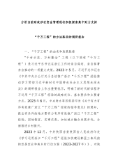 分析当前财政涉农资金管理现状积极探索集中财力支持“千万工程”的方法路径的调研报告一、“千万工程”的由来和政策脉络“千村示范、万村整治”工程(以下简称“千万工程”)是习近平总书记在浙江工作时亲自谋划、亲自部署亲自推动的一项重大决策。2023年5月,习近平总书记在《中共中央办公厅关于总结推广浙江“千万工程”经验推动学习贯彻习近平新时代中国特色社会主义思想走深走实》的调研报告上作出重要批示,明确了新时代新征程学习运用“千万工程”经验的战略定位、基本要求和主要着力点。2023年6月,中央财办等四部委印发《关于有力有序有效推广浙江“千万工程”经验的指导意见》的通知,提出有条件的地方要有力有序有效推广浙江“千万工程”经验,因地制宜、实事求是,加快城乡融合发展步伐,全面推进乡村振兴。2023年12月,中共...