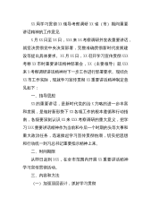 XX局学习贯彻XX领导考察调研XX省(市)期间重要讲话精神的工作意见X月XX日至XX日,XXX来XX考察调研并发表重要讲话,就坚决贯彻党中央决策部署,完整准确贯彻新时代发展建设等提出具体要求。XX月XX日,XX召开学习宣传贯彻XXX考察XX市时重要讲话精神部署会,XX(主要领导)就XXX来X考察调研讲话精神对下一步工作进行部署要求。现结合XX市工作实际,现就学习宣传贯彻XX重要讲话精神制定意见如下:一、指导思想XX的重要讲话,是新时代党的治X方略的进一步丰富和发展,是做好新形势下XX各项工作的根本遵循和行动指南,各级要深刻认识XX来XXX考察调研的重大意义,把学习XXX重要讲话精神作为当前和今...