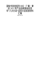 蓝秘书发言系列442(7篇)肇庆2021年产业招商落地攻坚年“”八大行动动员大会发言材料汇编2021年3月目录1.市人社局党组书记谢先群:全力做好产业招商落地和增资扩产企业用工保障12.市自然资源局党组书记、局长黄勇:为产业招商落地提供更坚实的用地保障23.市金融局党组书记、局长朱景亮:努力提高金融服务精准度持续做好产业招商金融服务34.四会市委副书记、市长李伟忠:构建产业招商落地高效机制定不移抓产业攻项目强经济45.德庆县委副书记、县长凌云:稳扎稳打聚焦“四大方面”全力促推产业招商落地56.怀集县委书记黎晓华:做好“一个攻坚,两个提升”推动产业招商落地上新台阶67.肇庆新区党工委副书记、管委...