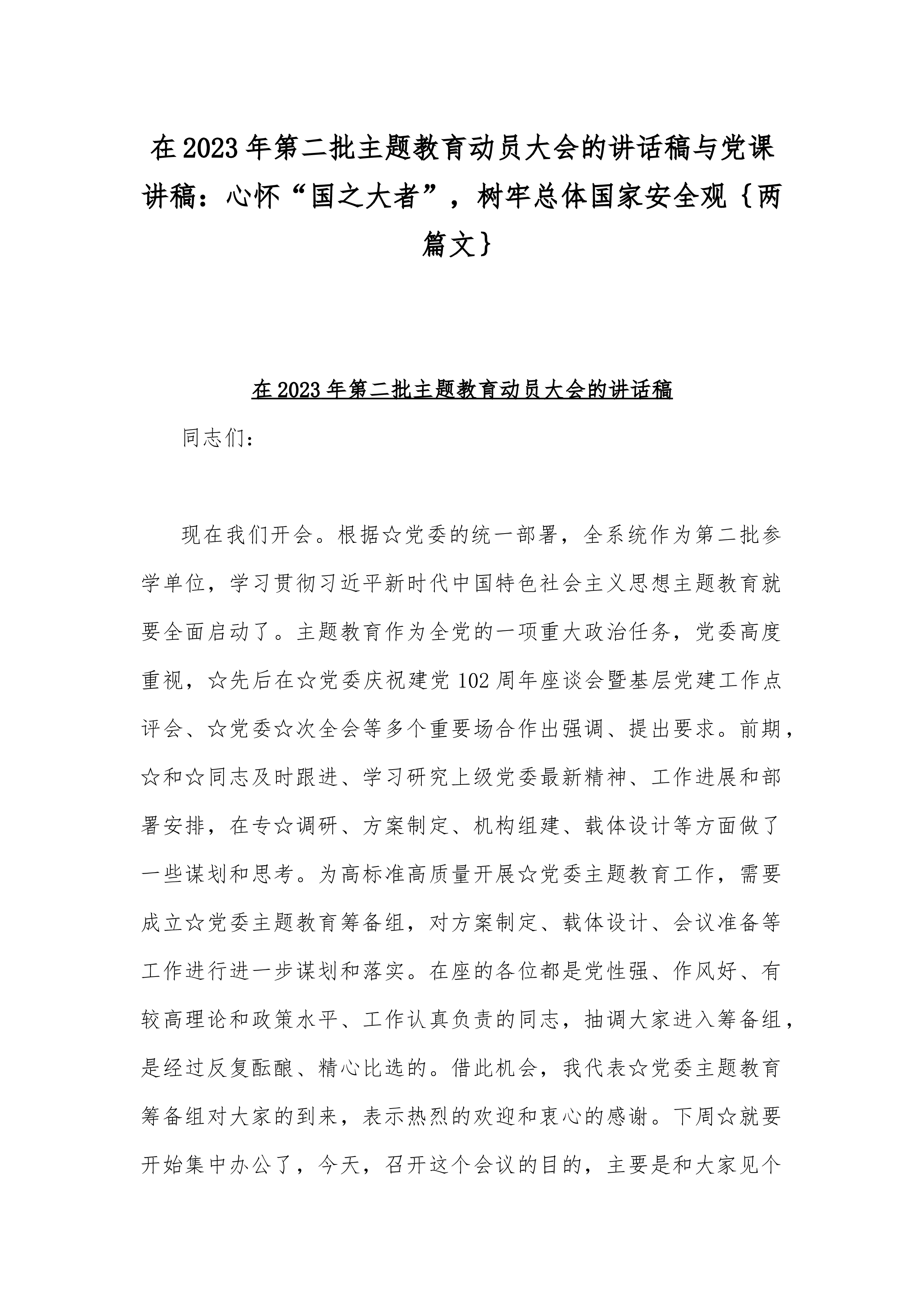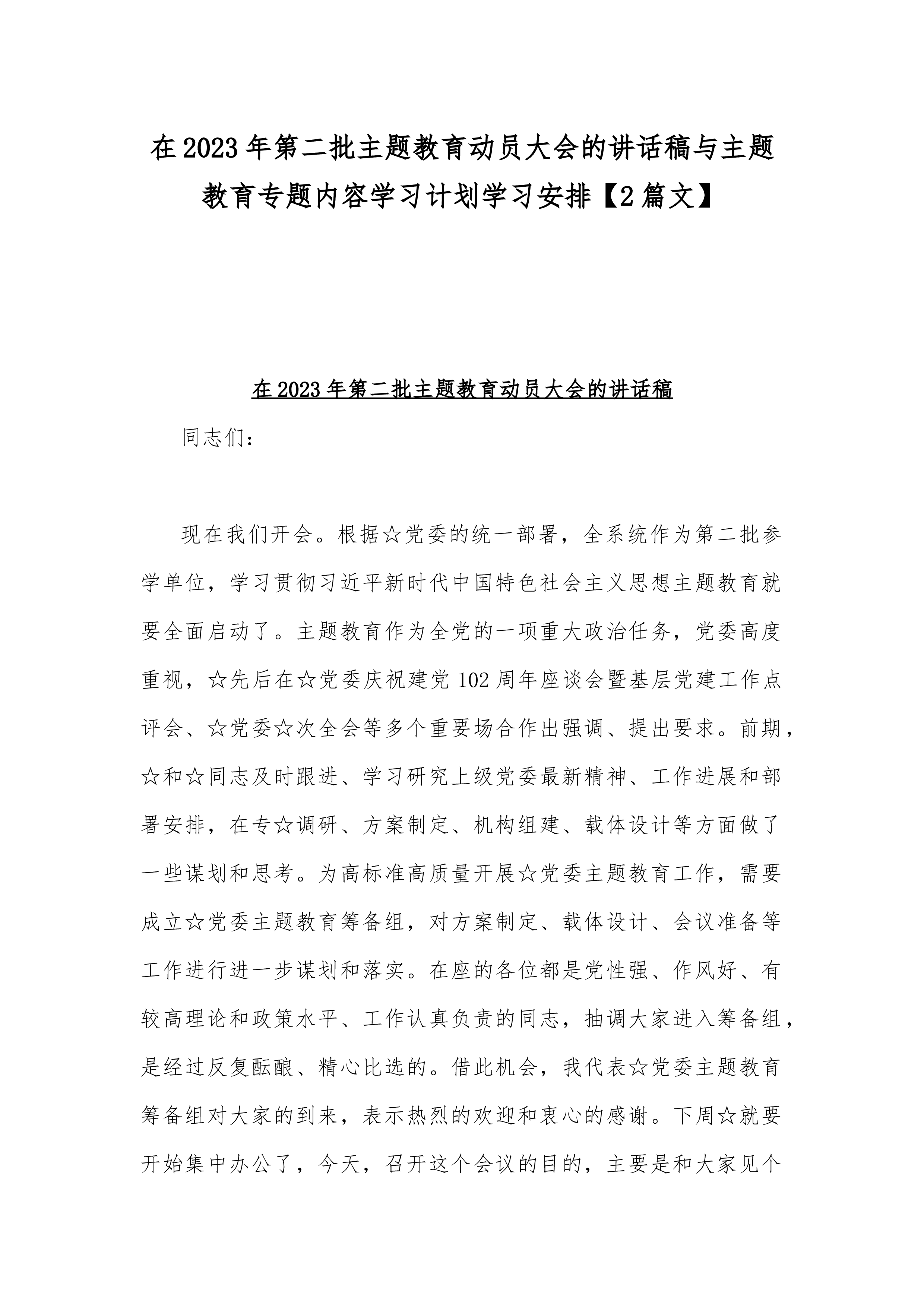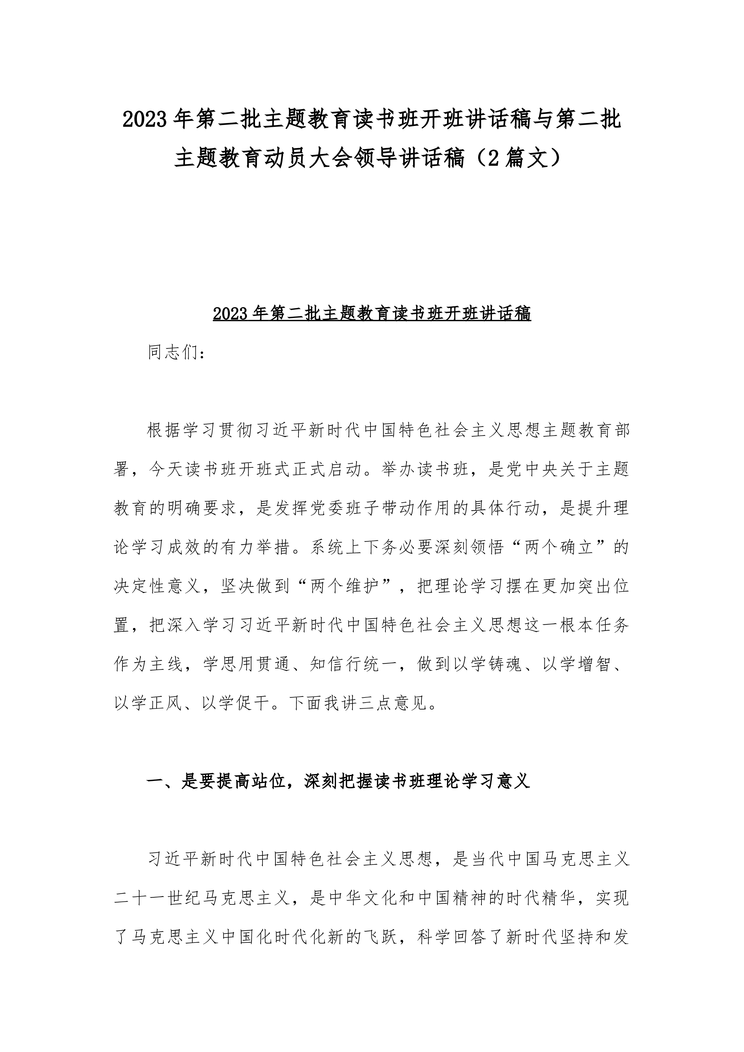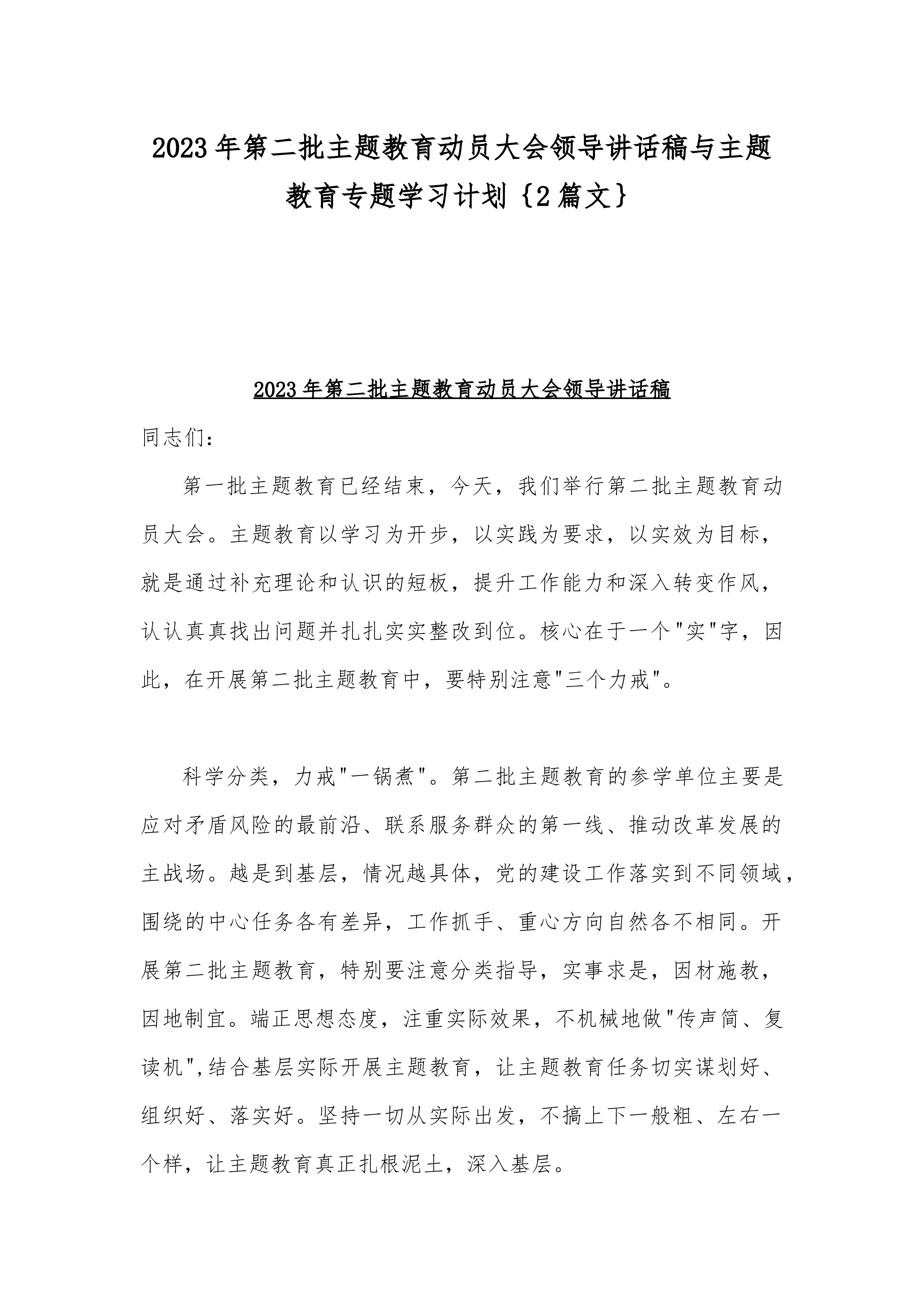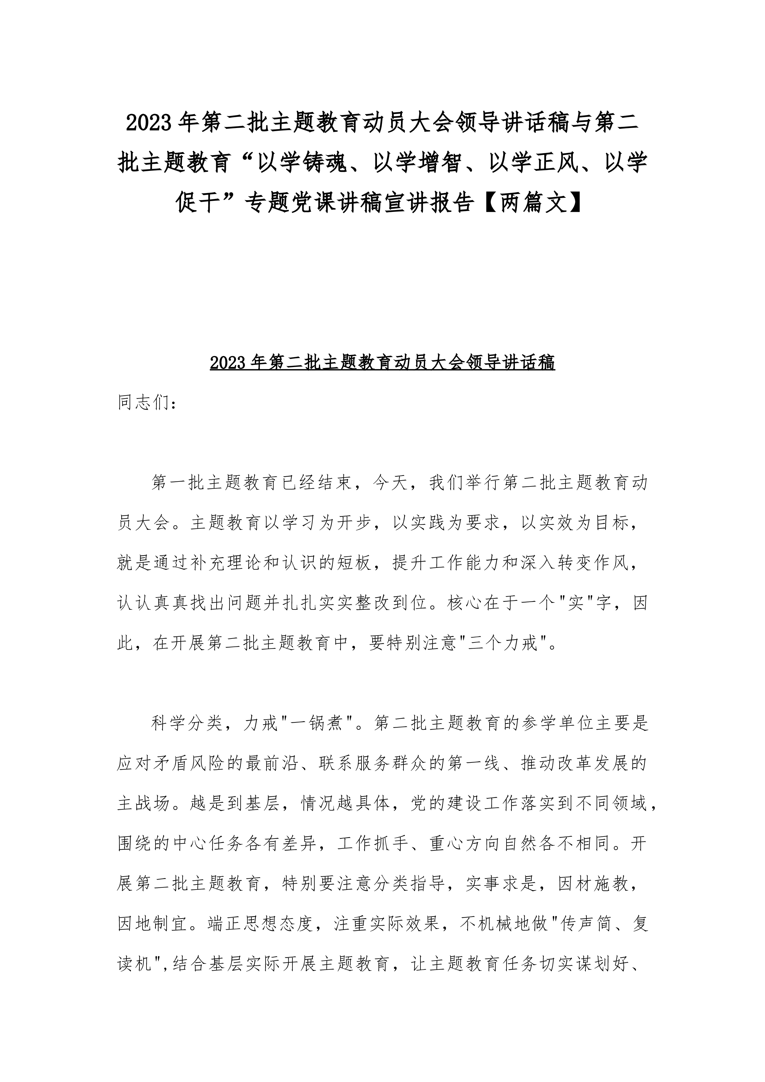 2023年第二批主题教育动员大会领导讲话稿与第二批主题教育“以学铸魂、以学增智、以学正风、以学促干”专题党课讲稿宣讲报告【两篇文】