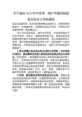 关于做好2023年中高考、端午节期间校园食品安全工作的通知(20230523)