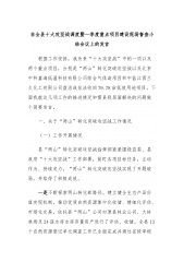 在全县十大攻坚战调度暨一季度重点项目建设现场督查小结会议上的发言一根据会议安排,简要汇报重点改革突破攻坚战和水运经济高质量发展攻坚战推进情况,以及牵头负责重大项目建设情况,不妥之处,敬请指正。一、重点改革突破攻坚战(一)近期进展2月调度会以来,县重点改革突破攻坚战指挥部持之以恒抓重点、补短板、强弱项,16个重点改革项目稳步推进,基本完成今年一季度目标任务。一是营商环境优化提升行动方面。已形成《2024年县优化营商环境提升行动方案(征求意见稿)》,进一步推广了“两书同达”“不见面办”信用修复机制和食品经营许可“承诺+现场视频”远程审批机制。二是改革试点示范提升行动方面。纵深推进普惠金融改革,数字...