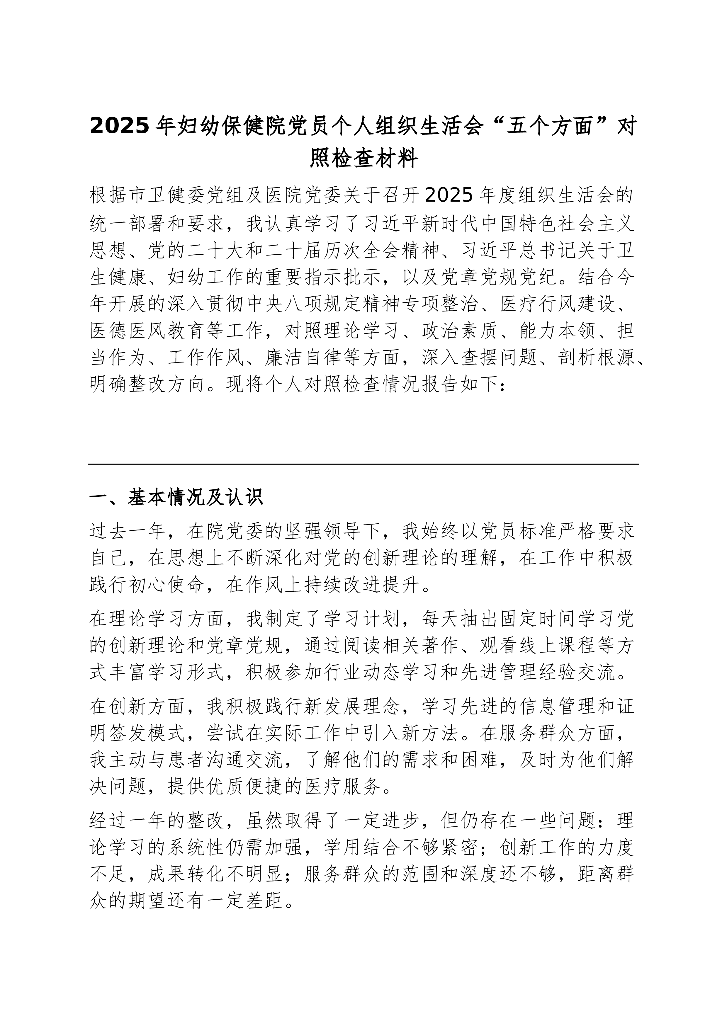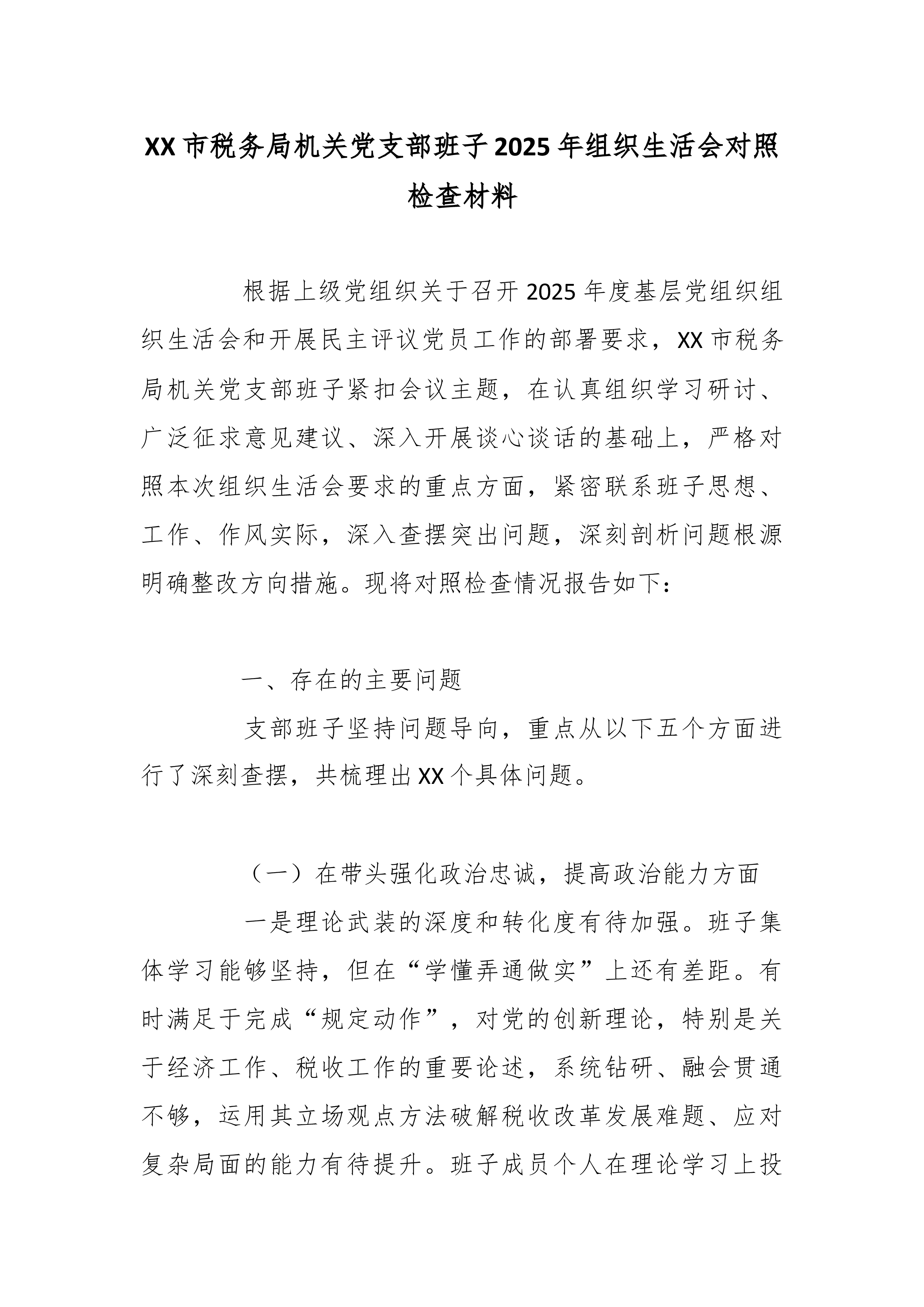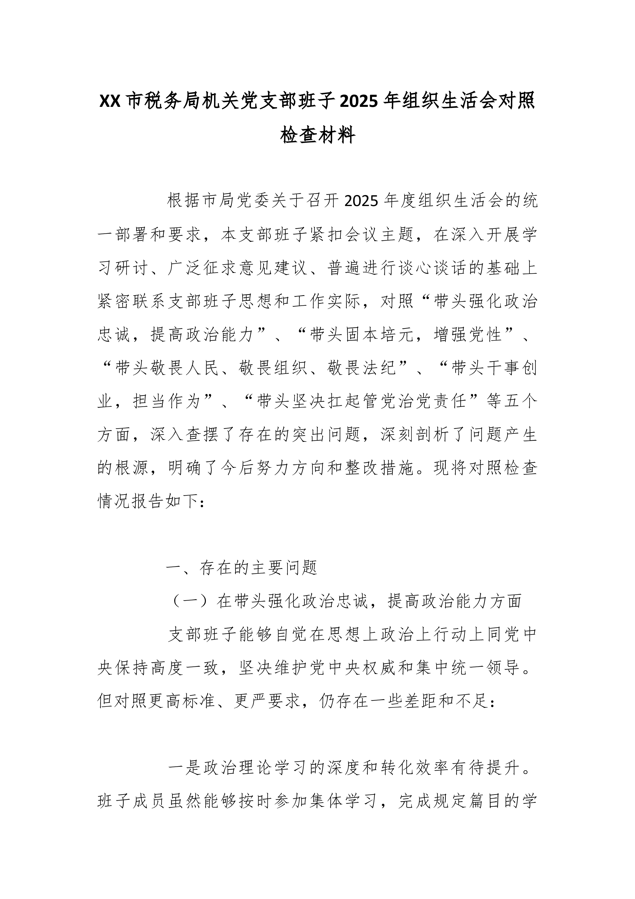 (28篇)2025年度组织生活会对照检查材料汇编(含支部班子、书记、委员、党员对照检查)区直机关工委党支部书记2025年度组织生活会个人对照检查材料 根据区直机关工委关于开好2025年度组织生活会的相关通知要求,本人紧扣会议主题,聚焦“学习贯彻党的二十大精神、落实新时代党的建设总要求”主线,在深入学习党的创新理论、广泛征求意见建议、扎实开展谈心谈话的基础上,紧密联系个人思想、学习和工作实际,重点围绕规定内容,深入查摆自身存在的差距和不足,深刻剖析问题根源,明确了今后的努力方向和改进措施。现将个人对照检查情况报告如下。 一、存在的突出问题 (一)学习贯彻党的创新理论方面 一是政治理论学习广度和深度不够,存在实用主义倾向,缺乏全面深入的研究,学习效果不理想。比如,组织支部学习,虽然严格落...