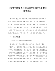 XXXX信息中心党支部2025年度组织生活会班子对照检查材料根据XXXX信息中心党支部2025年度组织生活会主题和要求,支部班子紧密结合工作实际,通过召开座谈会、个别谈话、发放征求意见表等多种形式,广泛征求党员和群众意见建议,并在此基础上,严格对照“加强理论武装、执行上级组织决定、严格组织生活、加强党员管理监督、做好群众工作、抓好自身建设”六个方面,深入查摆存在的问题,深刻剖析问题根源,明确提出整改措施。现将对照检查情况报告如下:一、存在的主要问题(一)加强理论武装方面,理论学习的深度和广度有欠缺一是理论学习系统性不强。支部班子在组织理论学习时,对习近平新时代中国特色社会主义思想的整体性、关联性把握不够,学习内容多集中于与业务工作紧密相关的章节和论述,未能做到全面系统、融会贯通。例如,在20...