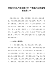 XX党支部2025年度组织生活会班子对照检查材料(精品)2按照上级党委关于召开2025年度组织生活会的统一部署,XX党支部班子紧扣会议主题,在会前组织党员深入开展理论学习,广泛开展谈心谈话,全面征求各方意见。支部班子结合工作实际,重点对照6个方面内容,深入查找存在问题,深刻剖析思想根源,并提出了切实可行的整改措施。现将对照检查情况汇报如下。一、存在的问题(一)加强理论武装方面一是理论学习的深度广度不够。支部在落实政治理论学习日制度时,往往满足于完成规定动作,对党的创新理论特别是习近平新时代中国特色社会主义思想的丰富内涵钻研不深2025年支部组织开展集中学习12次,其中专题研讨仅3次,占比不足三成,且研讨发言多局限于照本宣科,缺乏结合实际的深度思考。在学习党的二十届四中全会精神过程中,班子成员...