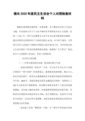 交警支队班子成员2025年度组织生活会个人对照检查材料(精品)根据支队党委关于召开2025年度基层党支部组织生活会的统一安排部署,本人紧扣会议主题,在深入学习党的二十届四中全会精神和《中国共产党章程》等内容的基础上,紧密结合近期支部开展的集中教育整顿活动要求,并与部分同志开展谈心谈话、征求意见,现对照“学习贯彻党的创新理论、加强党性锤炼、联系服务群众、发挥先锋模范作用、改作风树新风”五个方面,深入查摆自身存在的问题与不足,深刻剖析问题根源,并制定整改措施。现将个人对照检查情况报告如下。一、存在的主要问题(一)学习贯彻党的创新理论方面,理论武装“深”度不够,思想铸魂“实”效不强一是在“学”的自觉性上标准不高。思想上存在“以干代学”的倾向,认为作为业务单位的班子成员,首要任务是抓好勤务安排、事故...