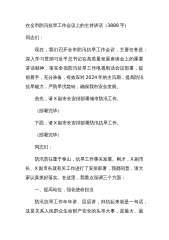在全县防汛抗旱和地质灾害防治工作动员部署会上的讲话同志们:刚才,县防汛办通报了全县防汛抗旱和地质灾害防治形势,对下一步的工作提出了很好的工作建议。县气象局、县农牧和水利局、县自然资源和林业草原局分别围绕会议主题作了交流发言,讲的要求比较具体、也比较细致,我完全同意,希望大家认真抓好落实。下面,我再强调三点意见。一、科学研判形势,深化防汛抗旱思想认识防汛抗早工作之所以每年都要开会、都要讲,是因为这项工作意义重大,是关系人民群众生命和财产安全的大事今年以来,我国的极端天气多发频发,防灾减灾救灾形势十分严峻。如,4月27日,广东省广州市白云区钟落潭镇遭遇龙卷风极端天气,灾害造成5人死亡,33人受伤;...