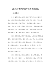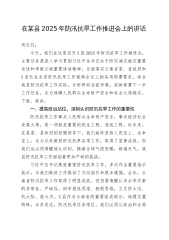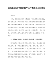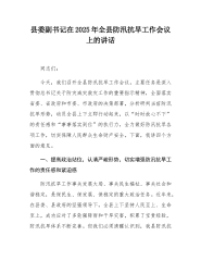 县委副书记在2025年全县防汛抗旱工作会议上的讲话同志们:今天,我们召开全县防汛抗旱工作会议,主要任务是深入贯彻习近平总书记关于防灾减灾救灾工作的重要指示精神,全面落实省委、省政府和市委、市政府的决策部署,分析研判当前防汛抗旱形势,动员全县上下立即行动起来,以“时时放心不下”的责任感和“事事落实到位”的执行力,全力做好防汛抗旱各项工作,切实保障人民群众生命财产安全。下面,我讲四个方面的意见。一、提高政治站位,认清严峻形势,切实增强防汛抗旱工作的责任感和紧迫感防汛抗旱工作事关发展大局、事关民生福祉、事关社会和谐稳定,是保民生、保发展、保稳定的重大政治任务。近年来,在县委、县政府的坚强领导下,全县...