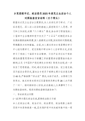 乡党委副书记、政法委员2025年度民主生活会个人对照检查发言材料(五个带头)根据本次民主生活会主题要求,本人在深化学习研讨、广泛征求意见、深入谈心谈话的基础上,紧密联系个人思想、学习和工作实际,对照“六个带头”要求,结合学习贯彻党的二十届四中全会精神和党中央关于“十五五”时期经济社会发展的最新战略部署,深入查摆突出问题,深刻剖析问题根源,明确整改方向和措施。会前,本人通过参加乡党委理论学习中心组专题学习、党支部集中研讨和个人自学等方式,系统学习了党的二十届四中全会精神、习近平总书记关于党的建设的重要思想和关于新疆工作的重要讲话重要指示批示精神,以及《中国共产党纪律处分条例》等党内法规,进一步夯实了思想根基。同时,通过发放征求意见表、设立意见箱、召开座谈会等形式,面向全乡党员干部群众累计征求意...