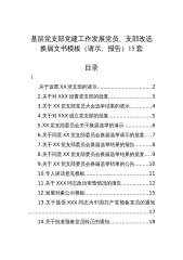 基层党支部党建工作发展党员、支部改选换届文书模板(请示、报告)15套