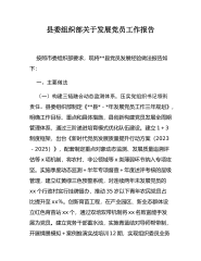 XX市农村发展党员情况报告根据工作安排,现就XX市农村发展党员情况进行了专题报告。一、主要做法X年以来,我市始终坚持以习近平新时代中国特色社会主义思想为指导,遵循发展党员“十六字”方针,认真贯彻落实省、市有关精神,结合我市农村实际,突出重点,实行推优,强化培养,明确责任,定期督查,农村发展党员得到了一定的加强。1、健全制度、明确责任,把发展党员工作纳入各级党组织重要工作来抓。要求各地把发展党员工作作为基层组织建设的一项重要任务来抓,明确发展党员工作岗位责任人责任意识,建立发展党员工作责任制,形成一级抓一级一级对一级负责的格局。对五年以上未发展党员的村党支部,村党支部及其上级乡镇党委列入市重点管理单位;对三年以上未发展党员以及发展党员工作存在突出问题的村党支部,列入县重点管理单位;对两年以上未...