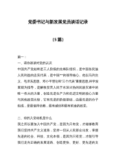 党委书记与新发展党员谈话记录(5篇)篇一:一、请你谈谈对党的认识中国共产党始终是工人阶级的先锋队组织,是中国各民族人民利益的忠实代表,是中国**的领导核心。他以马列主义、毛泽东思想、邓小平理论和“三个代表”重要思想,科学发展观为指导,是解救贫苦人民于水深火热的民族灾难中的唯一伟大的力量,创造先进生产力和先进文明的核心力量与其他政党比较,它有先进的阶级基础,由最先进的分子组成,是最值得信赖,最有威信和最有前途的政党。二、你的入党动机是什么我之所以要加入中国共产党,是因为只有党,才能够教育我们坚持共产主义道路,坚持一切从人民群众出发,掌握先进的社会、科技、文化本领,是因为只有党,才能引导我们走向正...
