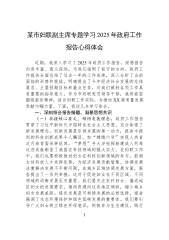 妇联副主席专题学习2025年政府工作报告心得体会文稿近期,我深入学习了2025年政府工作报告,深感报告内容丰富、意义深远,为我们指明了前行的方向。政府工作报告全面总结了过去一年的工作成绩,深入分析了当前面临的形势和挑战,明确提出了今年经济社会发展的总体要求、主要预期目标和重点任务,对我们做好各项工作具有重要的指导意义。作为市妇联党员领导干部,我将紧密围绕报告精神,结合妇联工作实际,为推动XX高质量发展贡献巾帼力量。下面,我谈几点学习体会。一、深刻领会报告精髓,凝聚思想共识(一)把握核心要义,领悟发展理念。政府工作报告贯穿了习近平新时代中国特色社会主义思想,充分体现了新发展理念。创新发展是引领发...