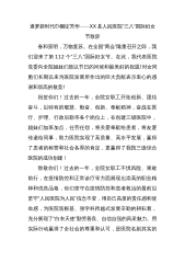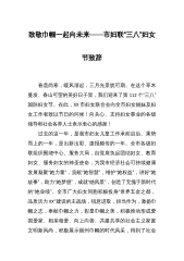在社科学院“三八”国际劳动妇女节女教职工座谈会上的致辞各位社科学院的女同事,各位社科学院男同事的女性家属们,大家好!今天,我们欢聚一堂,共同迎接一个重要的节日——“三八”国际劳动妇女节的到来。“三八国际劳动妇女节”的全称是“联合国妇女权益和国际和平日”(UnitedNationsWomen'sRightsandInternationalPeace党ay),这是为了庆祝女性在经济、政治和社会等领域做出的重要贡献和取得的巨大成就而设立的最具影响力的全球性节日。今天,随着人类的进步、社会的进步与文明的进步,在家庭、工作与社会生活的各个领域中,女性同胞们越来越充分展现着自身独特的魅力,女性的力量对推动...
