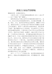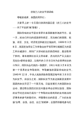 三八妇女节致辞(30篇)三八妇女节致辞篇1 亲爱的、漂亮的各位美女们,大家下午好! 在今天这个属于我们自己的节日里,我代表学校女工委员会首先祝大家节日快乐!祝福各位大姐、小妹们20_年,天天都给力,天天都漂亮,天天都是最有幸福感的女人! 先给大家讲一个故事。 一个6岁的小女孩问妈妈:“花儿会说话吗?”“噢,孩子,花儿如果不会说话,春天该多么寂寞,谁还对春天左顾右盼?”小女孩满意地笑了。 小女孩长到16岁,问爸爸:“天上的星星会说话吗?”“噢,孩子,星星若能说话,天上就会一片嘈杂,谁还向往天堂静穆的乐园?”。小女孩又满意地笑了。 女孩到了26岁,已是个成熟的女性了。一天,她悄悄地问做...