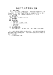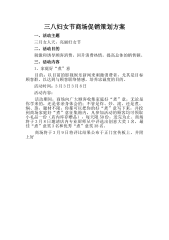 银行“三八妇女节”营销活动方案一、活动主题:喜迎“三八”真情回馈为回馈广大新老客户长期对本行的支持,支行特举行喜迎“三八”真情回馈活动,借此活动提升提升我行的品牌知名度,提高服务水平,赢得良好口碑,为支行完成XX年第一季度及全年任务目标打下坚实的基础。二、活动目的:通过本此活动,银行业务力争在XX年年初实现以下目标:1、客户新增数量超过历史同期最好水平,并使客户结构得到改善,质量得到进一步提高。2、储蓄余额净增300万元,网银激活率达到50%,理财销售量同比增长20万元。3、圆满完成各项业务指标。三、活动时间:XX年3月5日XX年3月8日四、活动对象:所有持我行银行卡、存折的客户和新开户客户。...