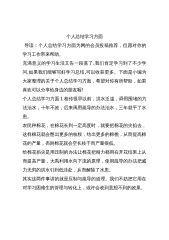 个人总结学习方面导读:个人总结学习方面为网的会员投稿推荐,但愿对你的学习工作带来帮助。充满意义的学习生活又告一段落了,我们肯定学习到了不少学问,如果我们能够写好学习总结,可以收获更多。下面是小编为大家整理的关于个人总结学习方面,希望对你有所帮助,如果喜欢可以分享给身边的朋友喔!个人总结学习方面1相传很早以前,洪水泛滥,舜用围堵的方法治水,十年不效,后来禹用疏导的办法治水,三年就平了水患。农民种棉花,在棉花长到一定高度时,就要把棉花的尖掐去,这样棉花就会憋出更多的枝杈,结出更多的棉桃,从而提高棉花的产量,否则棉花就会空长枝干而产量很低。给棉花掐尖是用压制的办法让棉花把精力都用在开花结果上从而提高...