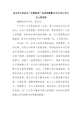 在全市公安机关“打黑除恶”总结表彰暨XX年公安工作大会上的讲话尊敬的和平书记,同志们:下午好!今天是我到XX三年来,第三次参加公安工作会议。公安工作很重要,职责很光荣,特别是我们广大的公安民警,始终站在维护稳定的第一线,处于管理服务的最基层,坚守在与犯罪分子作斗争的第一线,工作很辛苦。过去的一年,全市公安机关团结奋战,积极履职,攻坚克难,各项工作取得了显着成绩。特别是在和平书记等省厅领导的大力支持下,XX打黑除恶工作取得了巨大战果,打掉了欧建、李湘铭等一批长期盘踞我市、危害百姓的黑恶势力,深挖了一批黑恶势力“保护伞”,清除了蔡亚斌王宁等害群之马,社会风气明显好转,经济环境明显优化群众安全感明显...