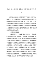 2022年上半年公安机关党支部党建工作总结上半年以来,在上级党委坚强领导下,在机关党委的精心指导下,**党支部深入学习贯彻习近平中国特色社会主义思想,全面贯彻党的十九大和十九届二中、三中、四中、五中、六中全会精神,切实加强党的领导,进一步压实压紧管党治警政治责任,充分发挥党建引领作用,不断强化以党的建设为根本的基层基础工作,全面推进工作高质量发展。现将**党支部党建工作情况报告如下。一、主要做法及成效(一)聚焦主责主业,切实履行党建主体责任。一是切实履行党组织主体责任。坚持党建工作和业务工作同步谋划、同步推进,将党建工作纳入年度工作计划;坚持党建例会制度,每月召开一次党建工作专题会议,就党支部...