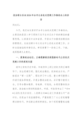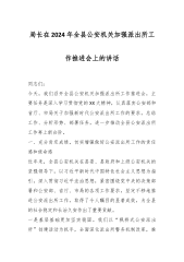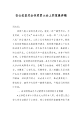深入推动新时代公安机关建设,不断提升人民群众获得感幸福感——xx市公安局局长专题党课进入新时代,我们党需要建设一支什么样的公安队伍,人民公安如何更好履行职责使命?我想做好当前公安工作必须要坚持问题导向,认真检视反思,抓好整改落实,着力推动xx公安工作长远发展。(一)要在加强政治建设、筑牢忠诚警魂上下功夫,确保党对公安工作的绝对领导。“公安姓党”是公安机关永远不变的根和魂。无数经验和教训告诉我们加强公安政治建设,确保党对公安工作的绝对领导任何情况下都不能旁落。在这方面不仅新一届宜黄县局党委要重点抓好,全县公安机关也要全力推动,突出抓好“三个方面”:一要旗帜鲜明讲政治。紧密结合党纪学习教育,公安机...