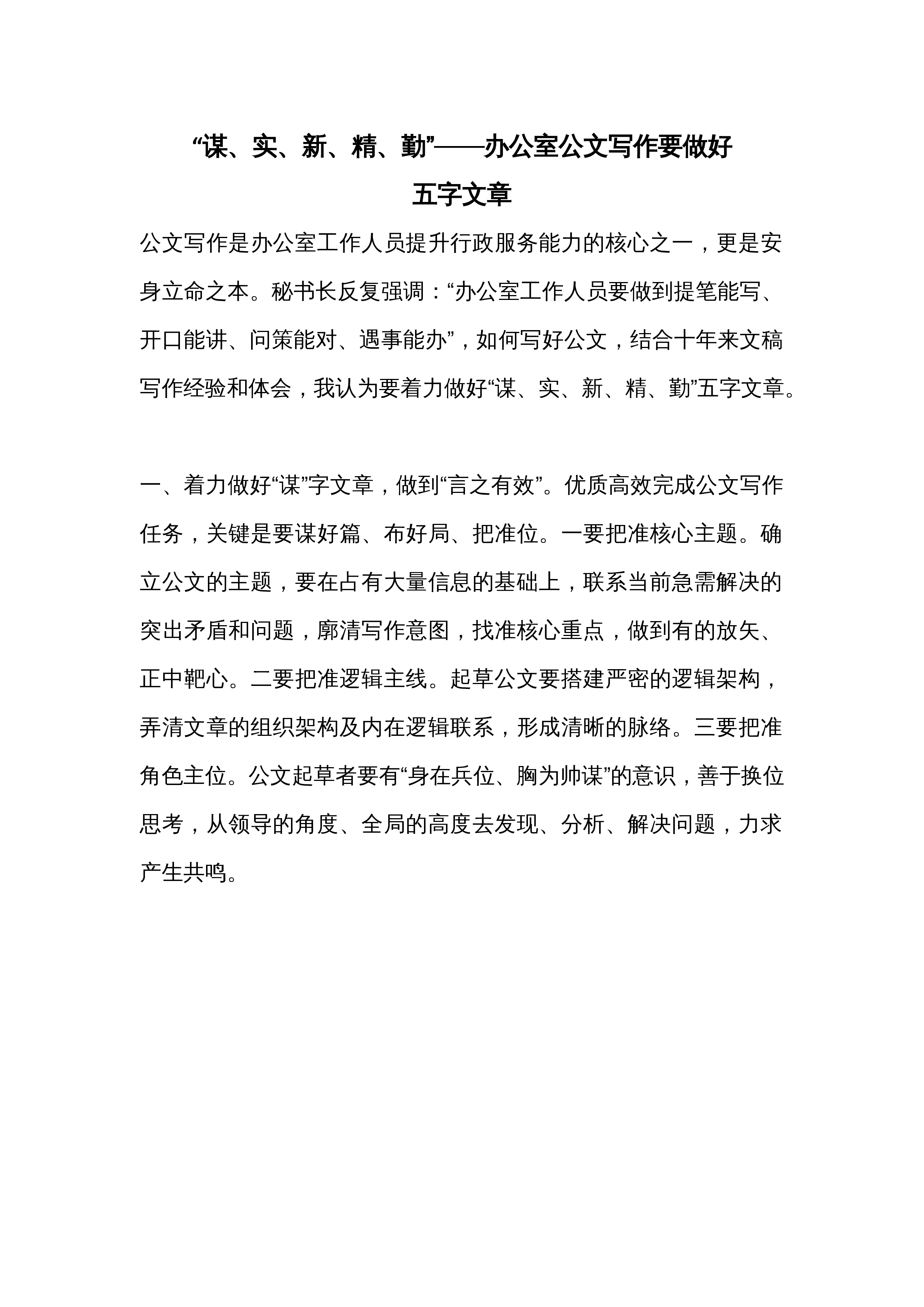 “谋、实、新、精、勤”——办公室公文写作要做好五字文章