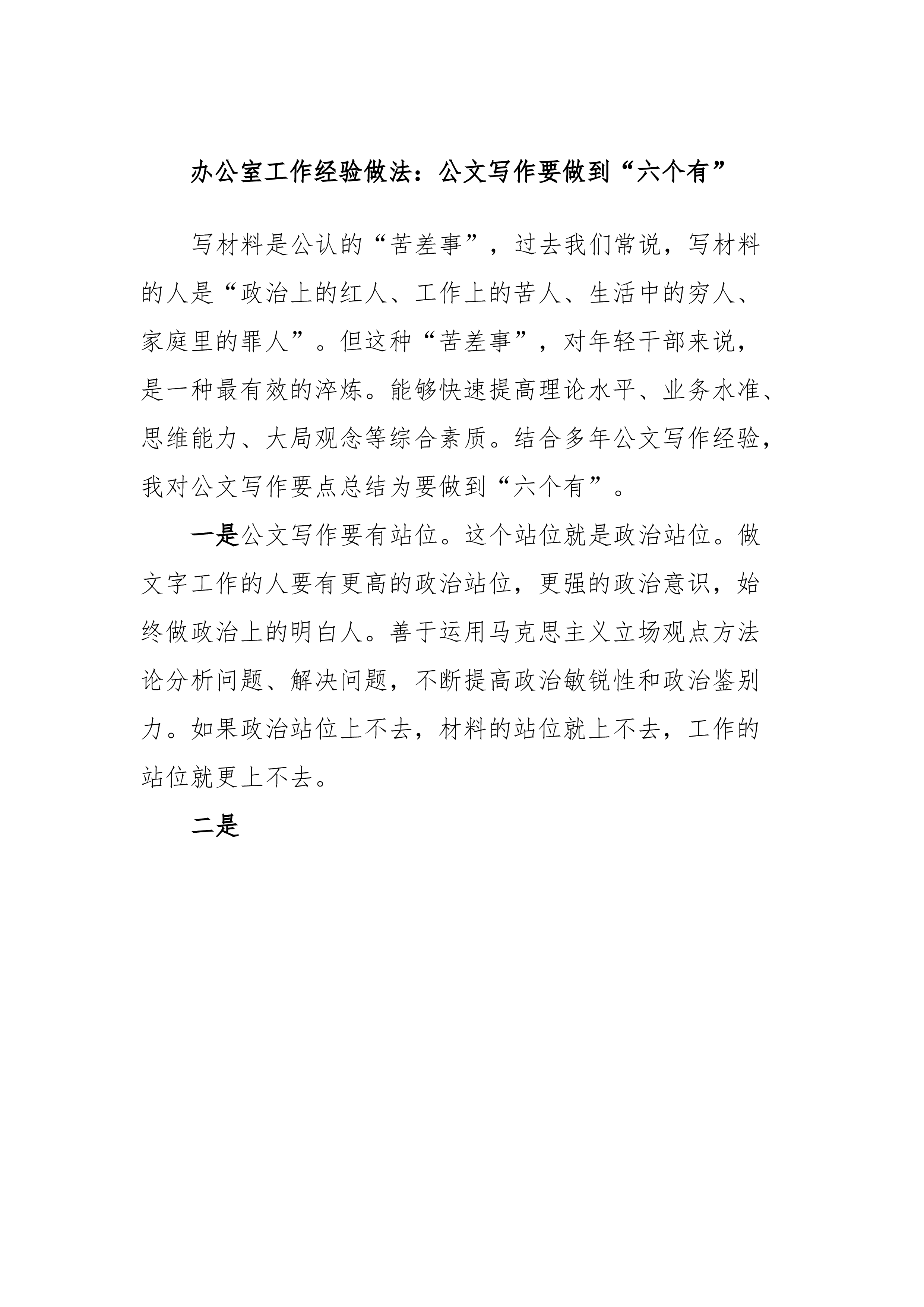 “谋、实、新、精、勤”——办公室公文写作要做好五字文章公文写作是办公室工作人员提升行政服务能力的核心之一,更是安身立命之本。秘书长反复强调:“办公室工作人员要做到提笔能写、开口能讲、问策能对、遇事能办”,如何写好公文,结合十年来文稿写作经验和体会,我认为要着力做好“谋、实、新、精、勤”五字文章。 一、着力做好“谋”字文章,做到“言之有效”。优质高效完成公文写作任务,关键是要谋好篇、布好局、把准位。一要把准核心主题。确立公文的主题,要在占有大量信息的基础上,联系当前急需解决的突出矛盾和问题,廓清写作意图,找准核心重点,做到有的放矢、正中靶心。二要把准逻辑主线。起草公文要搭建严密的逻辑架构,弄清文...