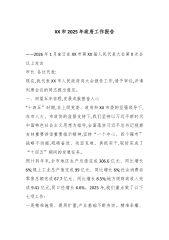 XX市2025年政府工作报告——2026年1月8日在XX市第XX届人民代表大会第X次会议上发言市长各位代表:现在,我代表XX市人民政府向大会报告工作,请予审议,并请列席会议的同志提出意见。一、回望五年征程,发展成就振奋人心“十四五”时期,在上级党委、政府和XX市委的坚强领导下,在市人大、市政协的监督支持下,我们坚持以习近平新时代中国特色社会主义思想为指导,全面落实习近平总书记视察吉林重要讲话重要指示精神,坚持“一个中心、四个强市”战略不动摇,砥砺奋进、攻坚克难、真抓实干,较好完成了“十四五”期间的发展任务。预计到年末,全市地区生产总值完成306.6亿元、同比增长6%;规上工业总产值完成99亿元、同比增长6%;社会消费品零售总额完成67.7亿元、同比增长8.5%;地方级财政收入完成9.41亿元...