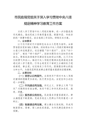 市工业园区党工委关于在全区开展深入贯彻中央八项规定精神学习教育的工作方案为贯彻落实党的二十届三中全会部署,巩固拓展学习贯彻习近平新时代中国特色社会主义思想主题教育成果,巩固深化党纪学习教育成果,锲而不舍落实中央八项规定精神,推进作风建设常态化长效化,根据中共中央办公厅印发的《关于在全党开展深入贯彻中央八项规定精神学习教育的通知》精神,结合我区实际,制定如下工作方案。一、目标要求坚持以习近平新时代中国特色社会主义思想为指导,持续深化党的创新理论武装,组织全区党员干部认真学习领会习近平总书记关于加强党的作风建设的重要论述,学习领会和贯彻落实中央八项规定及其实施细则精神,系统总结党的十八大以来深入贯彻中央八项规定精神取得的显著成效,集中整治违反中央八项规定及其实施细则精神的突出问题,运用由风及腐案...
