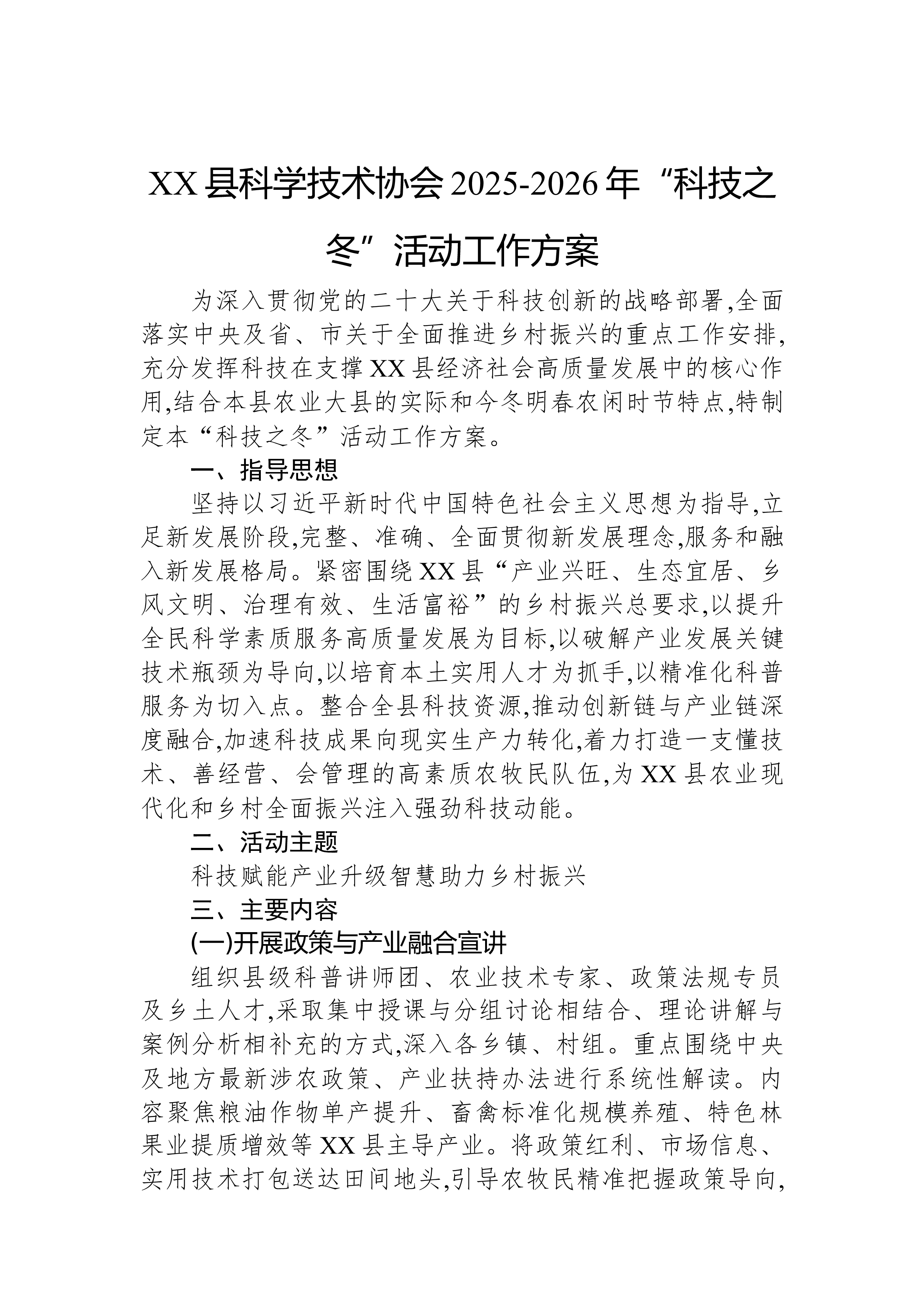 XX县科学技术协会2025-2026年“科技之冬”活动工作方案