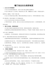 餐厅食品安全规章制度一、从业人员卫生管理制度1,从业人员必须取得健康证明,且按卫生部门规定定期进行健康检查。2,从业人员要注意个人卫生形象,养成良好的卫生习惯,穿戴整洁的工作衣帽。不得留过长指甲、涂指甲油、戴戒指,不得穿工作服入厕。3,从业人员不得面对食品打喷嚏、咳嗽及其他有碍食品卫生的行为,不得用手抓取直接入口食品,用勺直接尝味,使用后的操作工具不得随处乱放。4,从业人员必须认真执行各项食品安全管理制度。5,严格科学的洗手:操作前、便后以及与食品无关的其他活动后应洗手,先用消毒液消毒,后用流动水冲洗。二、餐(用)具洗涤、消毒管理制度1,设立独立的餐饮具洗刷消毒室或专用区域,消毒间内配备消毒、...