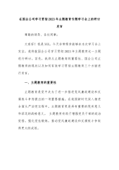 在国企公司学习贯彻2023年主题教育专题学习会上的研讨发言尊敬的领导、各位同事:大家好!我是XXX,今天非常荣幸能够在本次学习会上发言,我将就国企公司学习贯彻2023年主题教育这一主题进行研讨。首先,我将从主题教育的重要性、国企公司主题教育的现状以及如何有效学习贯彻主题教育三个方面进行发言。一、主题教育的重要性主题教育是党中央为了进一步推进党风廉政建设和反腐败斗争而提出的一项重要措施。在我国新时代深入推进全面从严治党过程中,主题教育更是具有重要的现实意义和深远的战略意义。主题教育有助于增强党员干部的政治觉悟,强化党性锻炼,推动党风廉政建设和反腐败斗争取得更大的成效。对于国企公司来说,主题教育更...