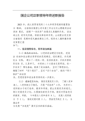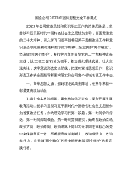 国企公司2023年党风廉政建设和反腐败工作要点2023年,公司党风廉政建设和反腐败工作的总体要求是:以习近平新时代中国特色社会主义思想为指导,全面贯彻落实党的二十大精神,深入贯彻习近平总书记对甘肃重要讲话重要指示批示精神,认真落实二十届中央纪委二次全会、省纪委二次全会精神及XX股份公司党风廉政建设和反腐败工作部署,更加深刻领悟“两个确立”的决定性意义,更加自觉增强“四个意识”、坚定“四个自信”、做到“两个维护”,坚决贯彻全面从严治党战略部署,认真落实健全全面从严治党体系任务要求,围绕公司高质量发展,充分发挥监督保障执行、促进完善发展作用。一、坚决做到“两个维护”,着力推进政治监督1.强化政治理...