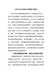 国企公司2023年上半年全面从严治党主体责任落实情况总结按照省委和国企工委2023年全面从严治党主体责任工作部署,x国企公司(集团)党委对2023年度履行全面从严治党主体责任相关考核标准进行对标自查,现将x国企公司(集团)2023年上半年落实全面从严治党主体责任情况报告如下:第一,紧紧围绕体系建设,持续健全完善责任落实机制。公司党委坚持从健全主体责任落实体系入手,确保各项主体责任得到有效落实。建立健全责任分工,按照全面从严治党主体责任落实体系,x国企公司(集团)结合实际,确定2023年推进全面从严治党工作思路,细化每名班子成员责任分工,真做到管真严、敢管敢严、长管长严,推动全面从严治党向纵深发...