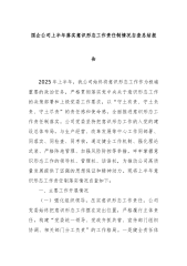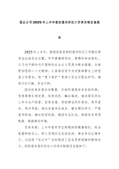国企公司2025年上半年落实意识形态工作责任制自查报告2025年上半年,集团党委坚持把意识形态工作摆在管党治企的突出位置,牢牢掌握领导权、管理权和话语权。以习近平新时代中国特色社会主义思想为根本遵循,全面贯彻党的二十大精神,认真落实党中央决策部署及上级党委工作要求,把“两个维护”贯穿工作全过程各环节,确保方向不偏、导向不移。面对改革发展任务繁重、外部环境复杂多变的形势,党委聚焦引领发展、防控风险、融合推进,推动意识形态工作与生产经营、改革发展、党的建设同步谋划、同步落实、同步考核。通过完善责任体系、强化理论学习、严管宣传阵地、健全防控机制、锻造专业队伍,持续夯实思想根基、稳固舆论环境。总体来看,上半年意识形态领域保持健康稳定,政治氛围积极向上,职工思想状态总体良好,舆论导向正确有力,为实现“...