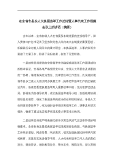 在全省市县乡人大换届选举工作总结暨人事代表工作视频会议上的讲话(摘要)去年以来,全省各级人大在省委及各级党委的坚强领导下,深入贯彻XJP总书记关于坚持和完善人民代表大会制度的重要思想,积极践行全过程人民民主的重大理念,在换届选举、人事代表等方面做了大量工作,取得了良好效果,创造了宝贵经验。一是始终坚持把党的全面领导作为确保换届选举工作圆满成功的根本保证。全省各地严格按照党中央、全国人大常委会及省委的统一部署,落细落实政治责任、法律责任和工作责任,扎实做好我省市县乡三级人大首次同步换届工作,始终把牢选举工作的正确政治方向。各级党委把换届选举列入重要议事日程,充分发挥总揽全局、协调各方的领导作用,...