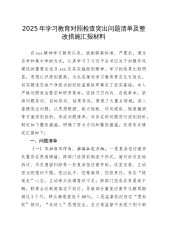 某县纪委监委领导干部2025年学习教育对照检查11个方面突出问题清单及整改措施汇报材料根据县委关于xx学习教育对照检查阶段自查自纠工作的统一部署,县纪委监委领导班子成员坚持以xxx思想为指导,深入学习贯彻习近平总书记关于xx学习教育和作风建设的重要讲话精神,认真研读《习近平关于加强党的作风建设论述摘编》,严格对标中央集中整治的xx个方面突出问题和违反xx规定及其实施细则精神的隐形变异作风问题,按照“一体推进学查改”要求,全面开展自查自纠。班子成员结合工作实际,深入检视问题、剖析根源,形成11个方面突出问题清单,并逐项制定整改措施,确保问题整改见底见效。现将对照检查情况汇报如下。一、问题清单(一...