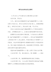 在全区安全生产和应急管理工作会议暨区安委会第一次全体(扩大)会议主持讲话同志们:现在召开全区安全生产和应急管理工作会议暨区安委会第一次全体(扩大)会议,主要任务是贯彻落实国务院安全生产电视电话会议、省市安全生产和应急管理工作会议暨2024年安委会第一次全体(扩大)会议精神,通报2023年安全生产和应急管理工作,安排部署2024年重点任务。参加今天会议的有:区委、区政府主要领导、分管领导,区政府各副区长,各乡镇党委书记、乡镇长,各社区党组织书记,区属各部门主要负责人,区安委会、减灾委、抗震救灾指挥部、防汛抗旱指挥部、地质灾害应急指挥部、森林草原防灭火指挥部、消防安全委员会成员单位及有关部门主要负...