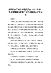 某区长在区城市管理委员会2022年第二次会议暨城市更新行动工作推进会议主持词